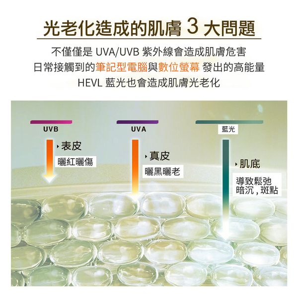 透過物理性防曬劑及化學性紫外線吸收劑方式,可以有效阻隔UVB和UVA。