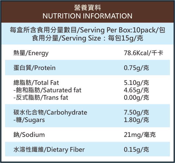 容量/Spec.: 15公克/包,10包/盒 (15g/pack, 10packs/Box)