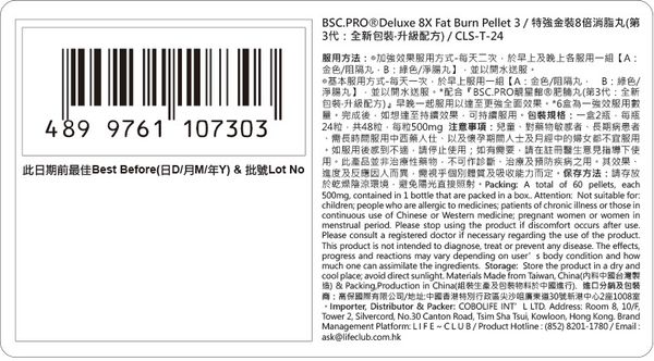 BSC.PRO 靚星館「特強金裝 8 倍消脂丸 (第 3 代)」具有以下特點: