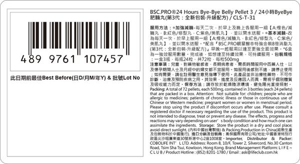 *配合『BSC.PRO靚星館®特強金裝8倍消脂丸(第3代:全新包裝‧升級配方)』早晚一起服用以達至更強全面效果。