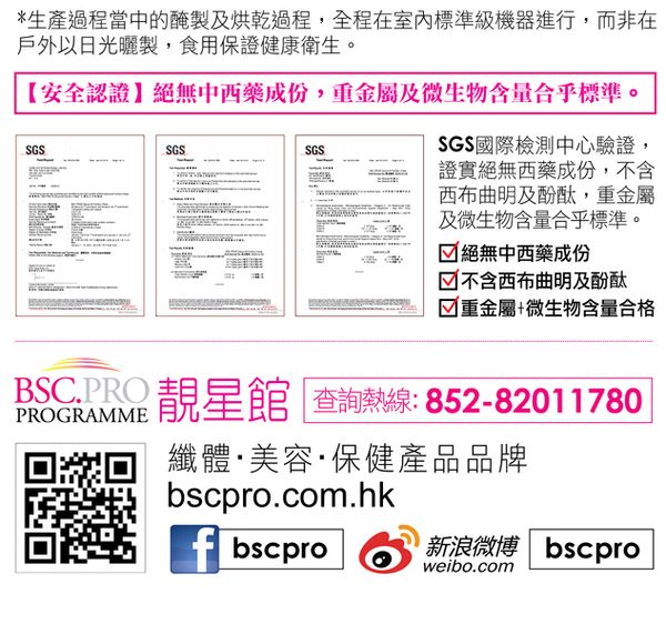 SGS國際檢測中心驗證,證實絕無西藥成份,不含西布曲明及酚酞,重金屬及微生物含量合乎標準。