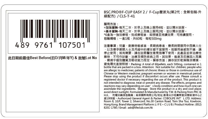 BSC.PRO靚星館【豐滿升Cup】F-Cup豐波丸(第2代:全新包裝‧升級配方)(60粒)【原裝正品行貨】