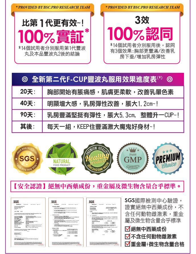 由內而外開啟回彈激大感、最新添加植物雌激素之王成分:蓮花植物胎盤萃取物及琉璃苣子油 GLA,令妳胸部再次發育,向傲人 F-CUP 身材目標進發。