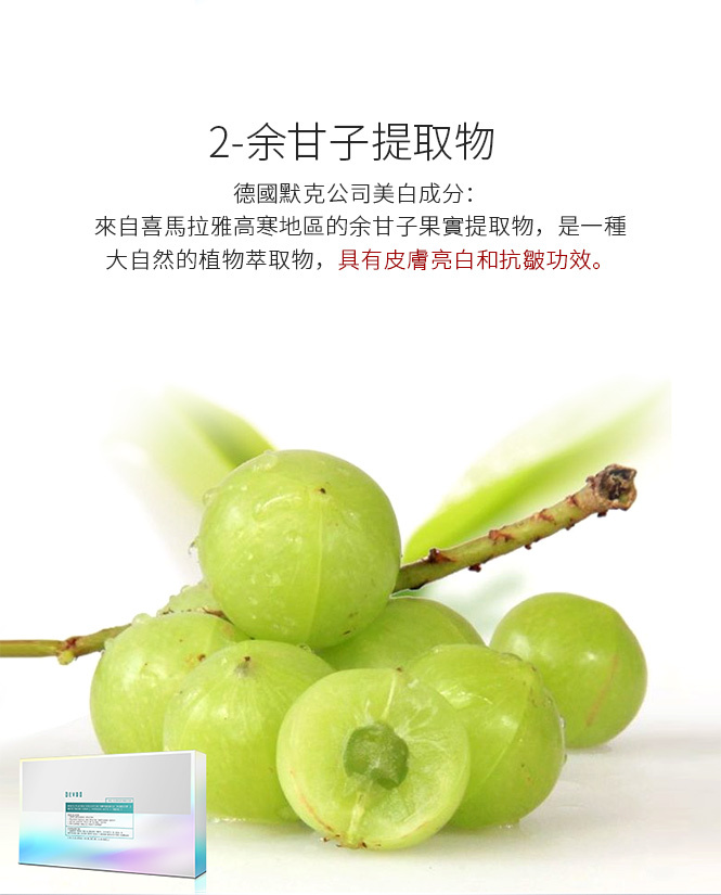 來自喜馬拉雅高寒地區的余甘子果實提取物,是一種天然、高效的植物萃取物,經測試驗證,具有皮膚漂白和抗皺功效。