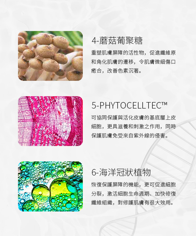 重塑肌膚屏障的活性物,刺激細胞的活化,促進纖維原和角化細胞的遷移,令肌膚微細傷口癒合,改善色素沉著。