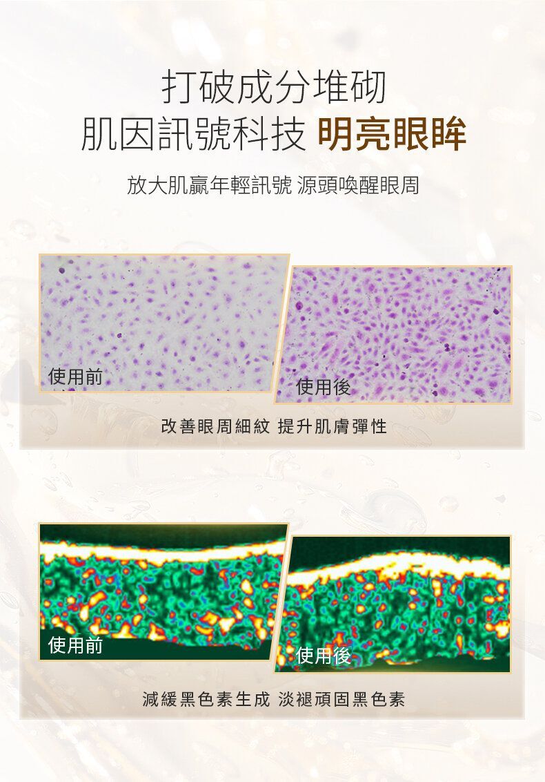 輔上高提純橙皮苷甲基查爾酮和柑橘果皮提取物,輕盈的精華液能迅速抵達嬌嫩的眼部肌膚中,幫助減少黑色素、黑眼圈和不均勻膚色,緩解疲勞和壓力症狀,消除水腫浮腫。眼部皮膚感覺清爽。
