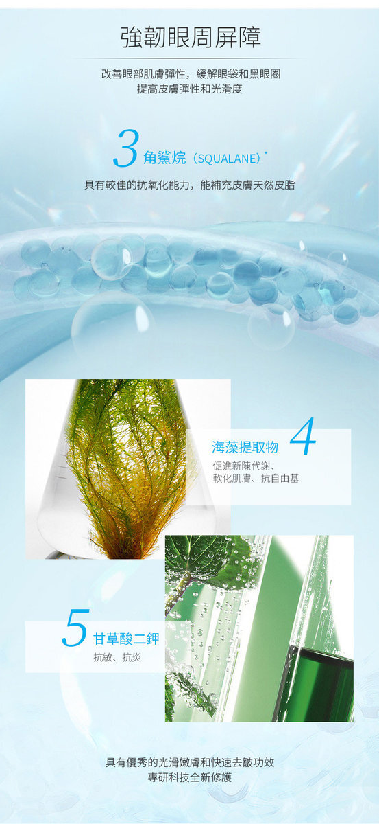 主要功效:強效眼部緊緻及抗浮腫。