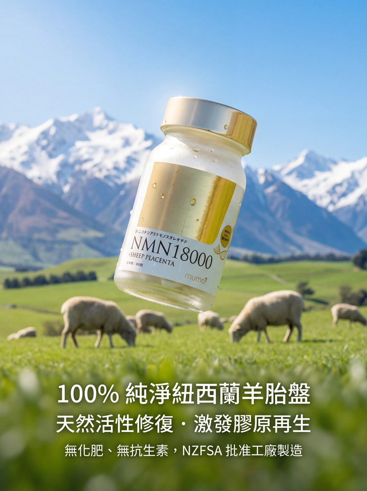 ✅ 100%純淨紐西蘭羊胎盤萃取超微粉物428.4mg|雙重逆齡配方NMN協同增效