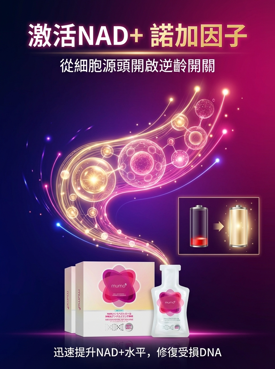 - 能迅速提升體內NAD+水平,激活DNA基因修復能力,增加皮膚彈性,減細毛孔,減少皺紋及淡斑
