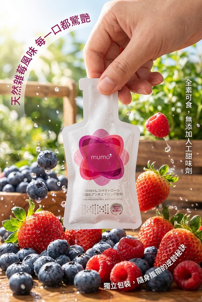 mumo 液態NMN白藜蘆醇抗衰老口服液(雜莓味)配合3大專利成份 (30克*10包)【原装正品行貨】