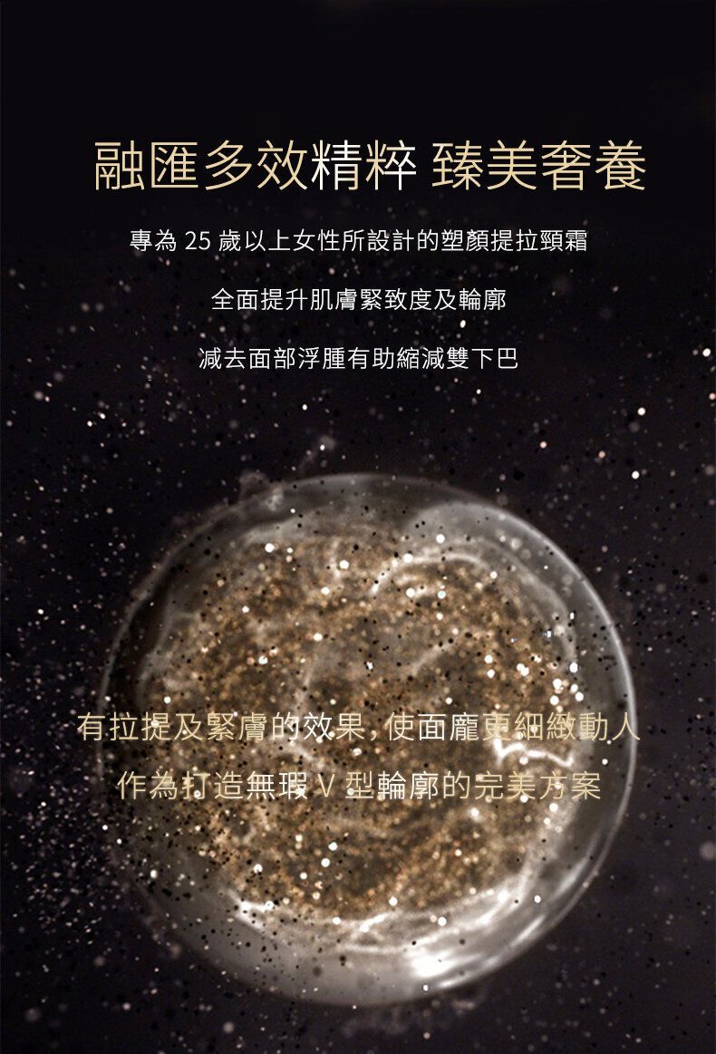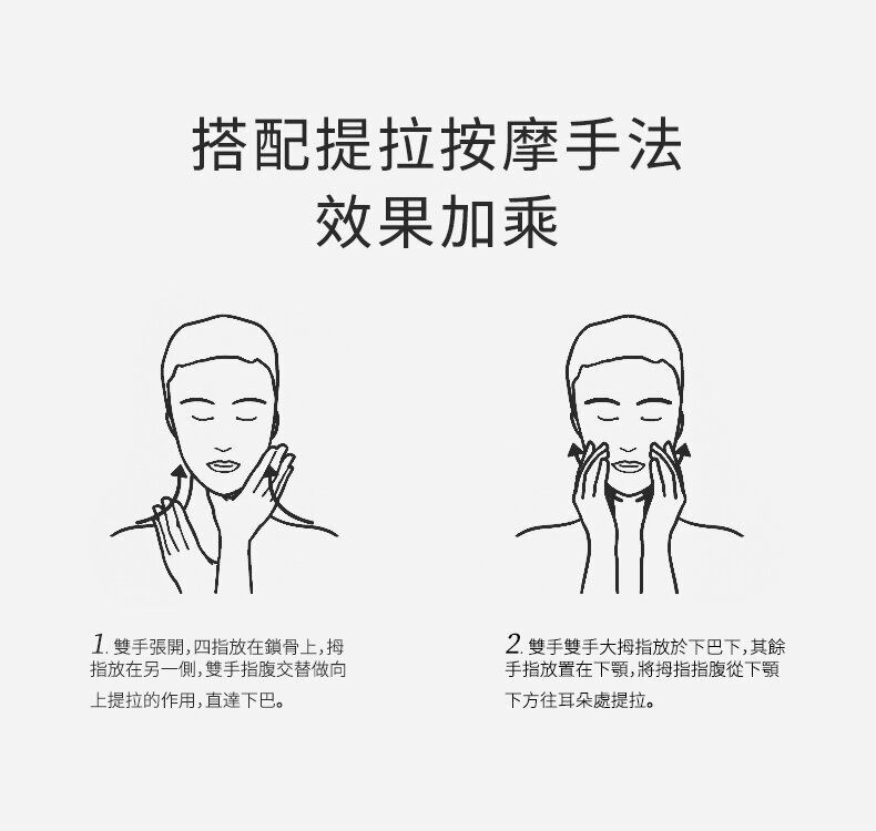 重點功效:⭐改善頸紋及雙下巴問題⭐改善鬆弛下垂的臉形,擊退包包臉,塑造V形臉⭐激活肌膚膠原再生,回復緊緻彈性,提升輪廓⭐回復水潤有光澤,令肌膚保濕、滋養