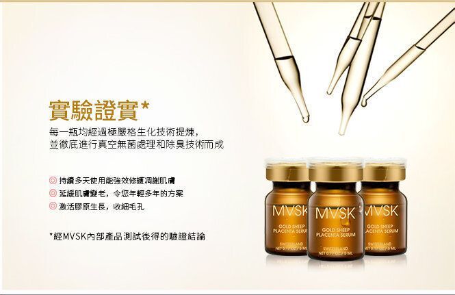 MVSK®嚴格選用來至高海拔的無污染草原、黑綿羊的健康胚胎細胞因子,每一滴均經過極嚴格活細胞生化技術提煉,劑量計算極為精確,並切底進行真空無菌處理和頂尖除臭技術而成,安全有效。